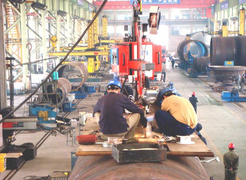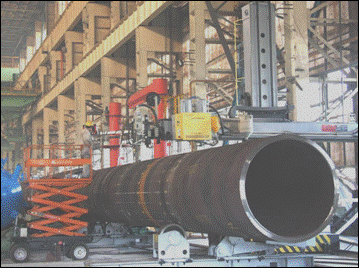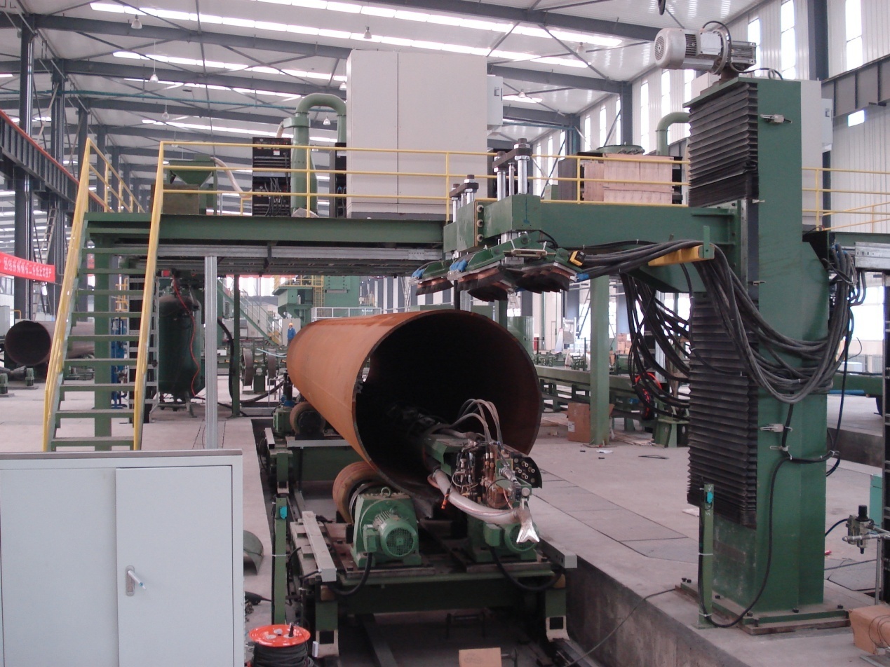 ● 2套(3套)四絲內(nèi)焊:預(yù)焊之后,在鋼管內(nèi)部進(jìn)行4絲埋弧焊接。